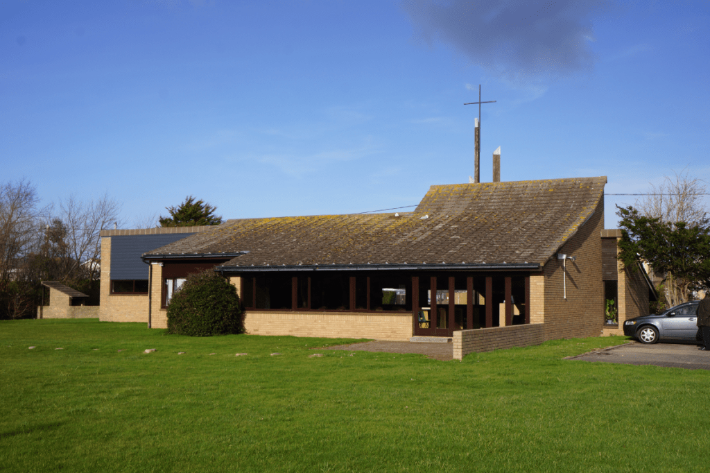 The church was built in 1973-74 to cater for the needs of a year-round congregation as well as a transient holiday population. It was designed by Bowen Dann Davies, the partner-in-charge being Bill Davies, the project architect I. G. Davies and the contractor Anwyl Construction Co Ltd. It cost £30,000.