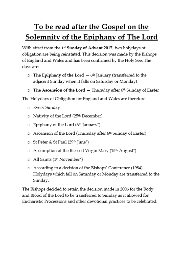 Holy Days of Obligation 2026