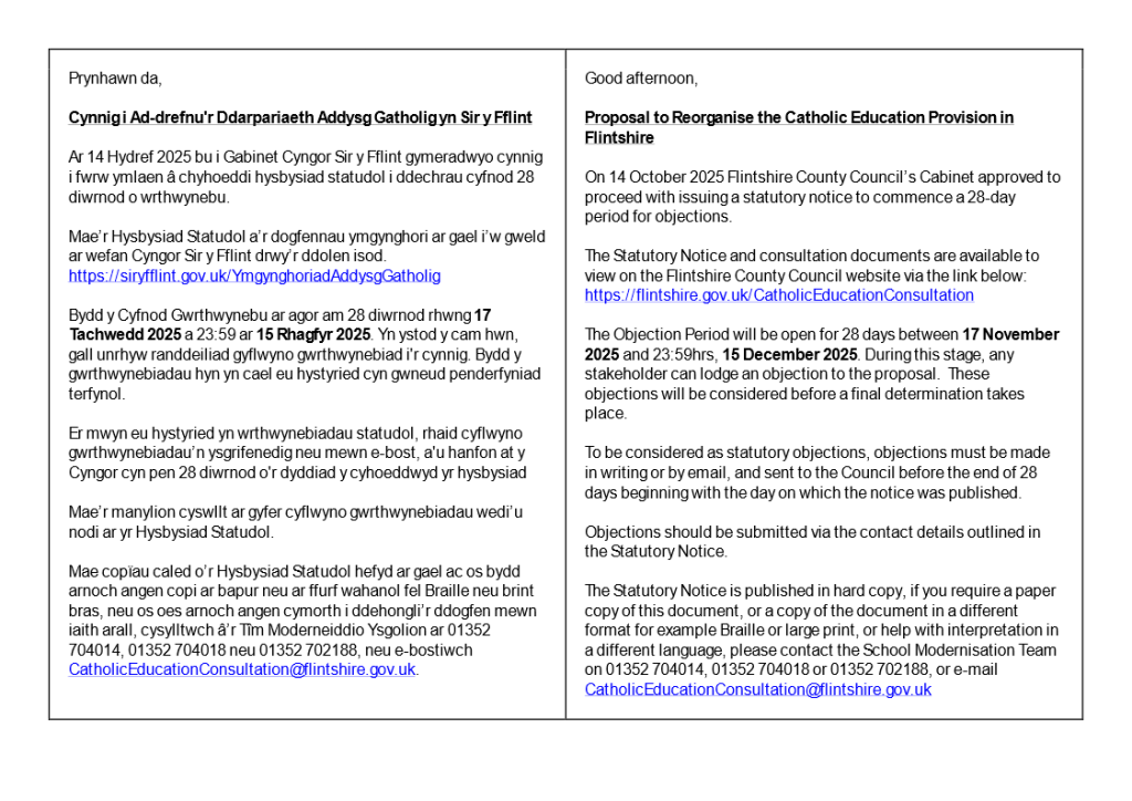 Proposal to Reorganise the Catholic Education Provision in Flintshire